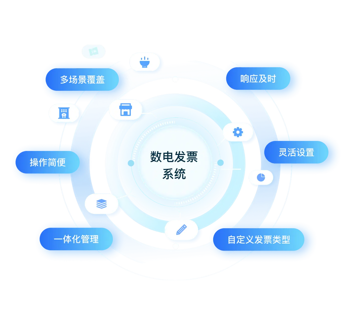 灵活配置适应餐饮、酒店、零售等各行业特点,一套方案满足各类业态开票需求,省去多系统维护的繁琐自定义发票类型