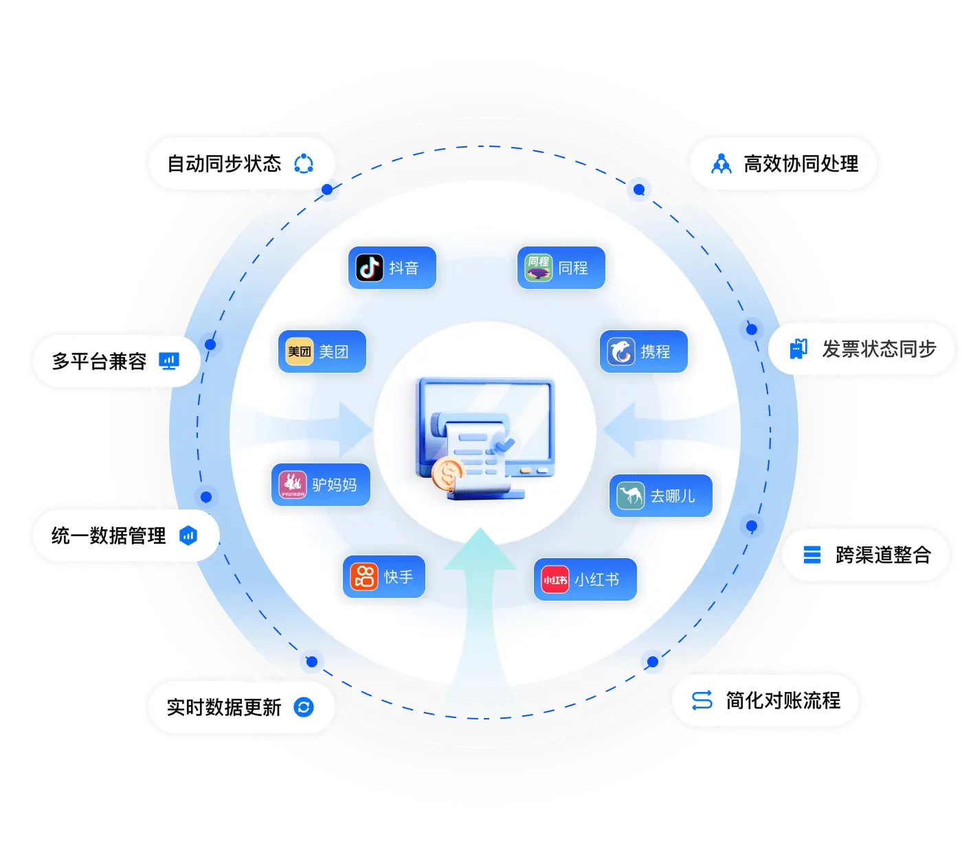已预置对接抖音、美团、携程、飞猪等主流平台的开票接口,实现快速连接状态双向实时同步